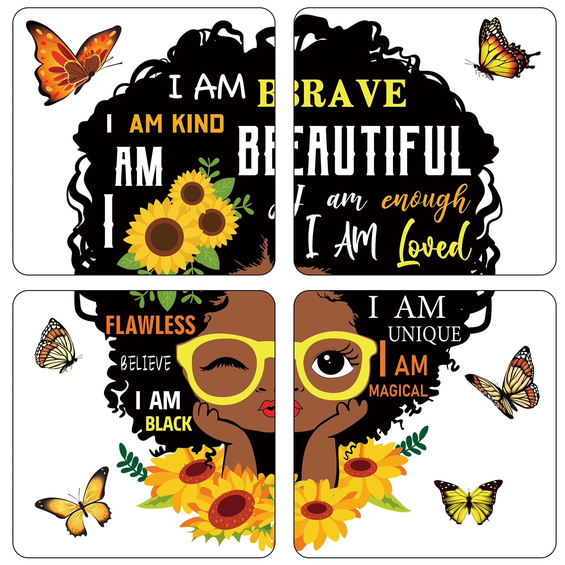 Wide Application: Our black girl inspirational quote wall decor is an ideal gift for your kids and convinces them that they are unique. They are suitable for bedrooms, playroom, living room, nursery room, kindergarten, classroom, and so on. Also, they can be used as a gift for toddlers, kids, your little princess on birthdays, Children's Day, Christmas, and more.