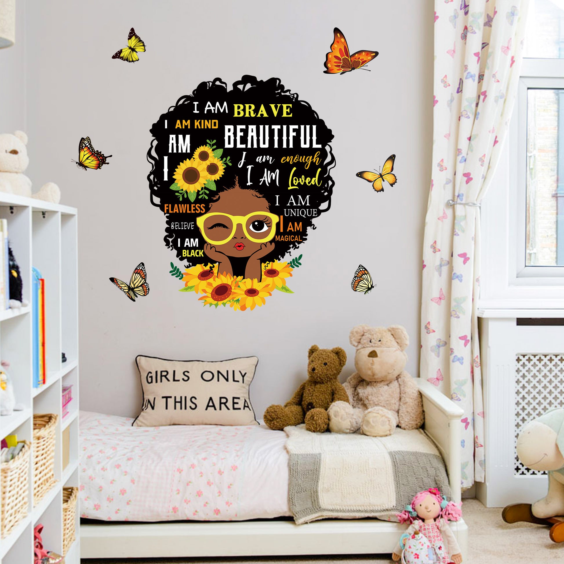 W1cwey 10pcs Black Girl Magic Inspirational Quote Wall Art Decor I’m Beautiful I’m Brave with Butterfly Decal Stickers African American Motivational Saying Stickers for Baby Toddler Bedroom Playroom