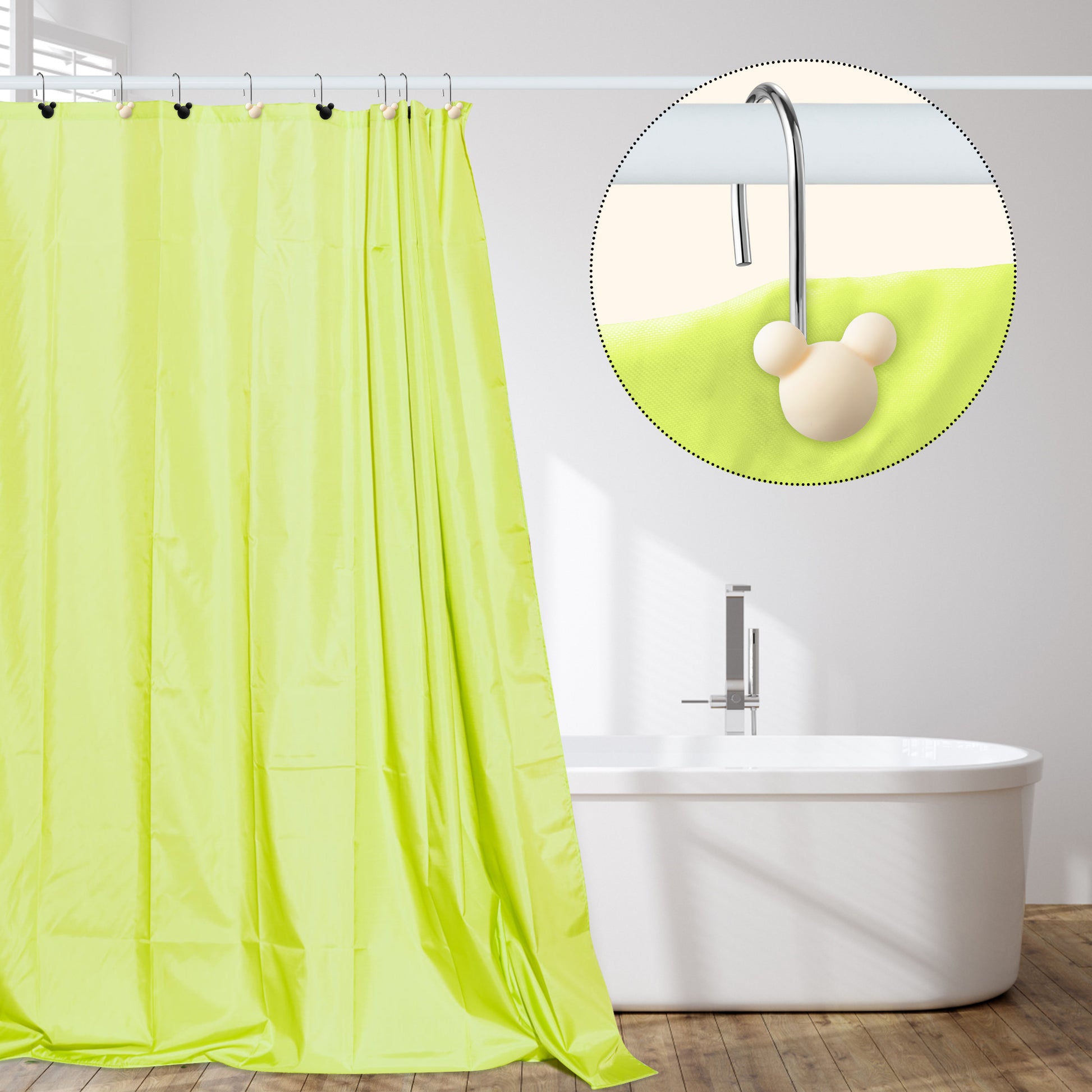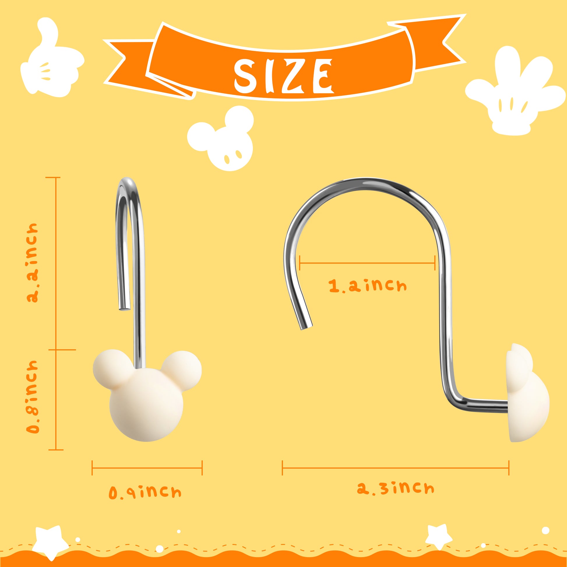 Good Value: Include 12pcs of cartoon mouse shower curtain hooks, with 2 different colors.Size Detail: The total size is 2.3*3 inches, hook inner diameter is 1.2 inches, mouse pattern diameter is 0.8*0.9 inches, fits standard size shower rods.