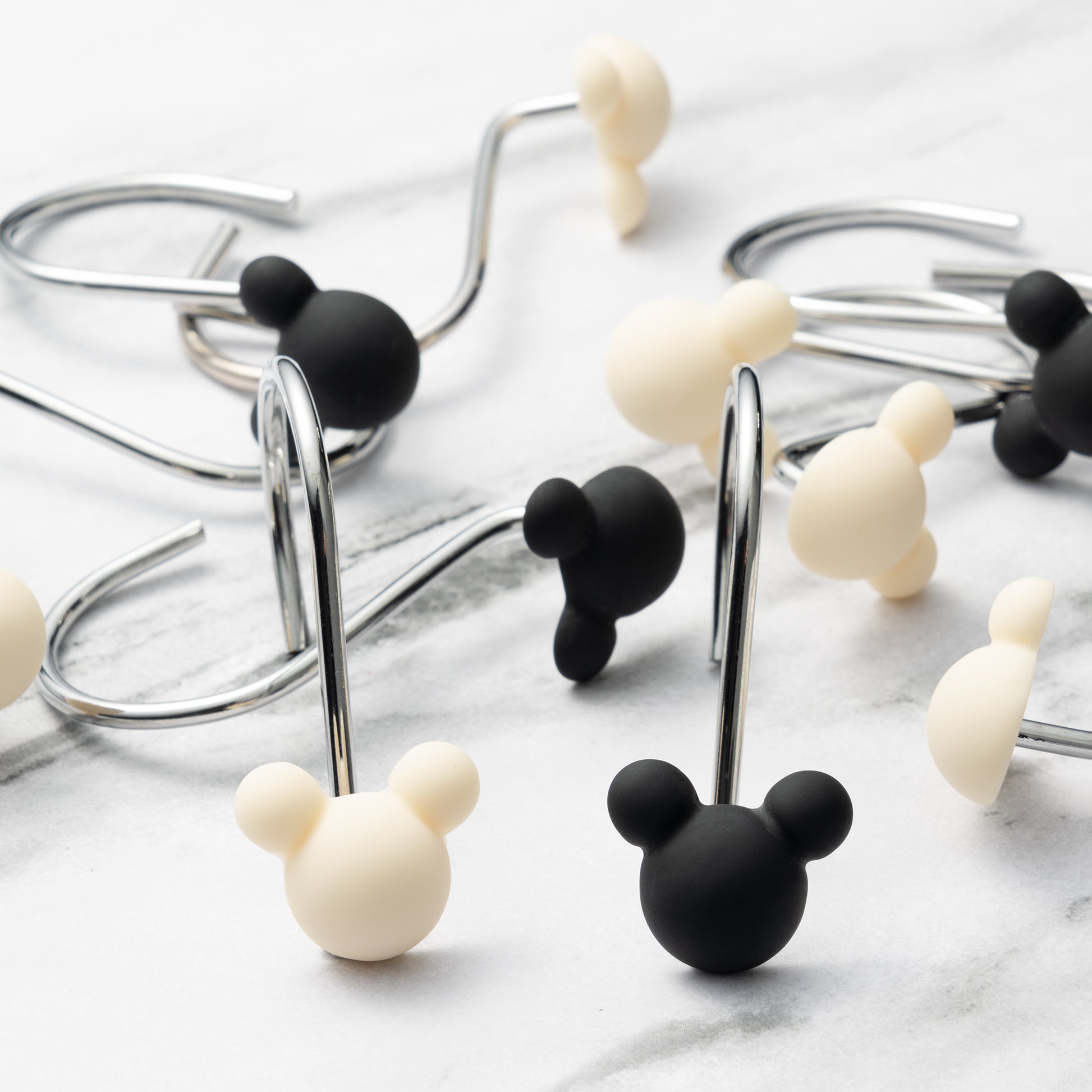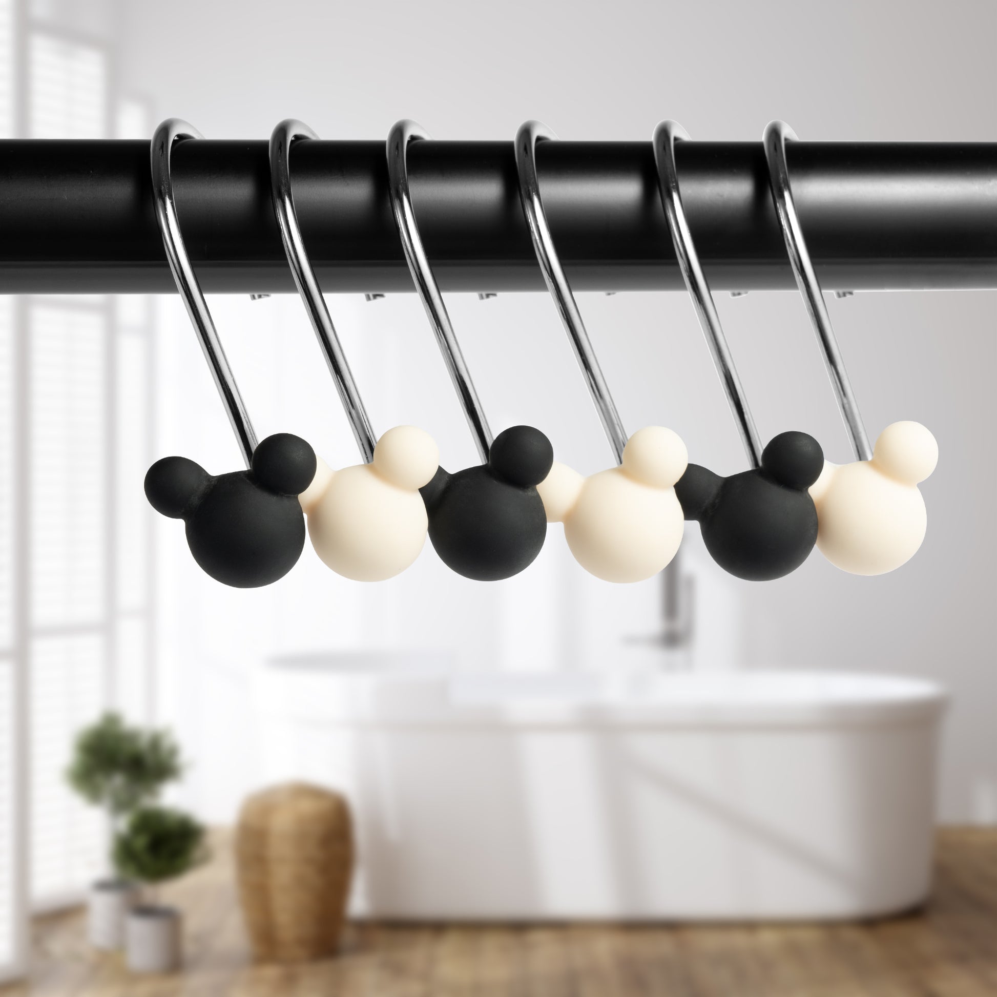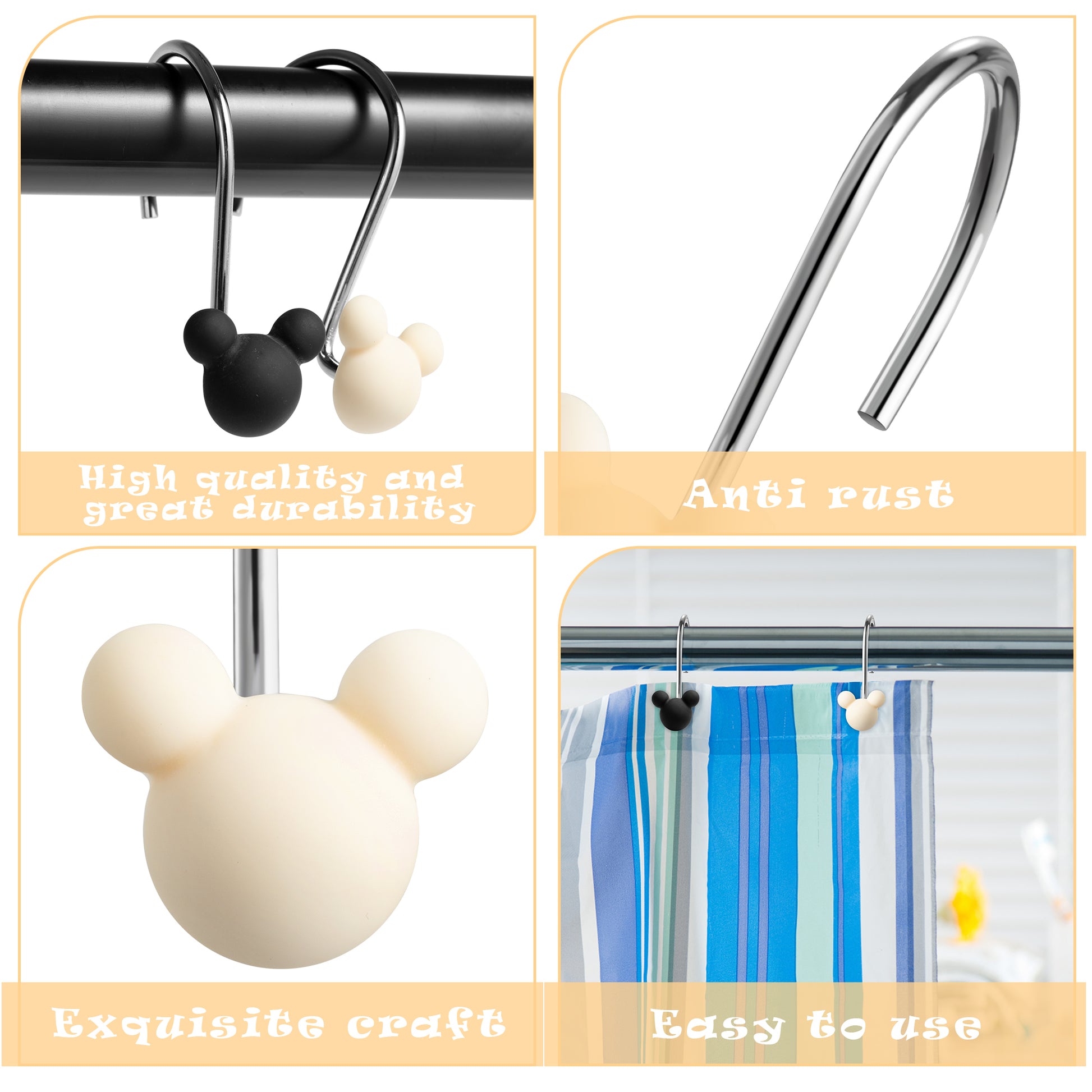 W1cwey 12pcs Black and White Mouse Shower Curtain Hooks Rustproof Metal Curtain Hangers Glide Shower Rings for Shower Curtain Cartoon Theme Stainless Steel Curtain Hook Rings for Kids Bathroom Decor