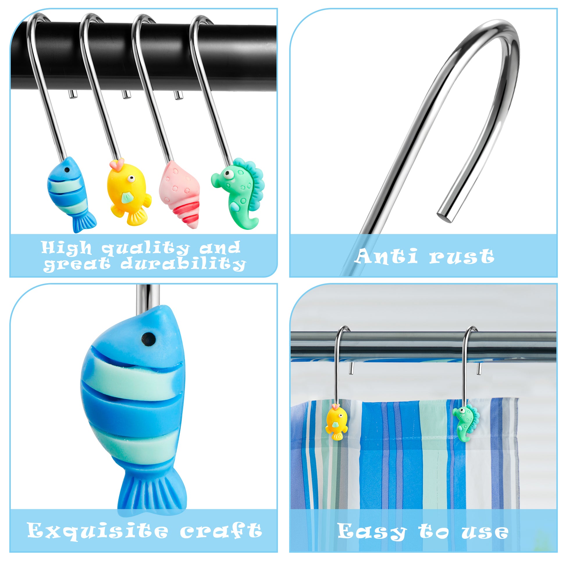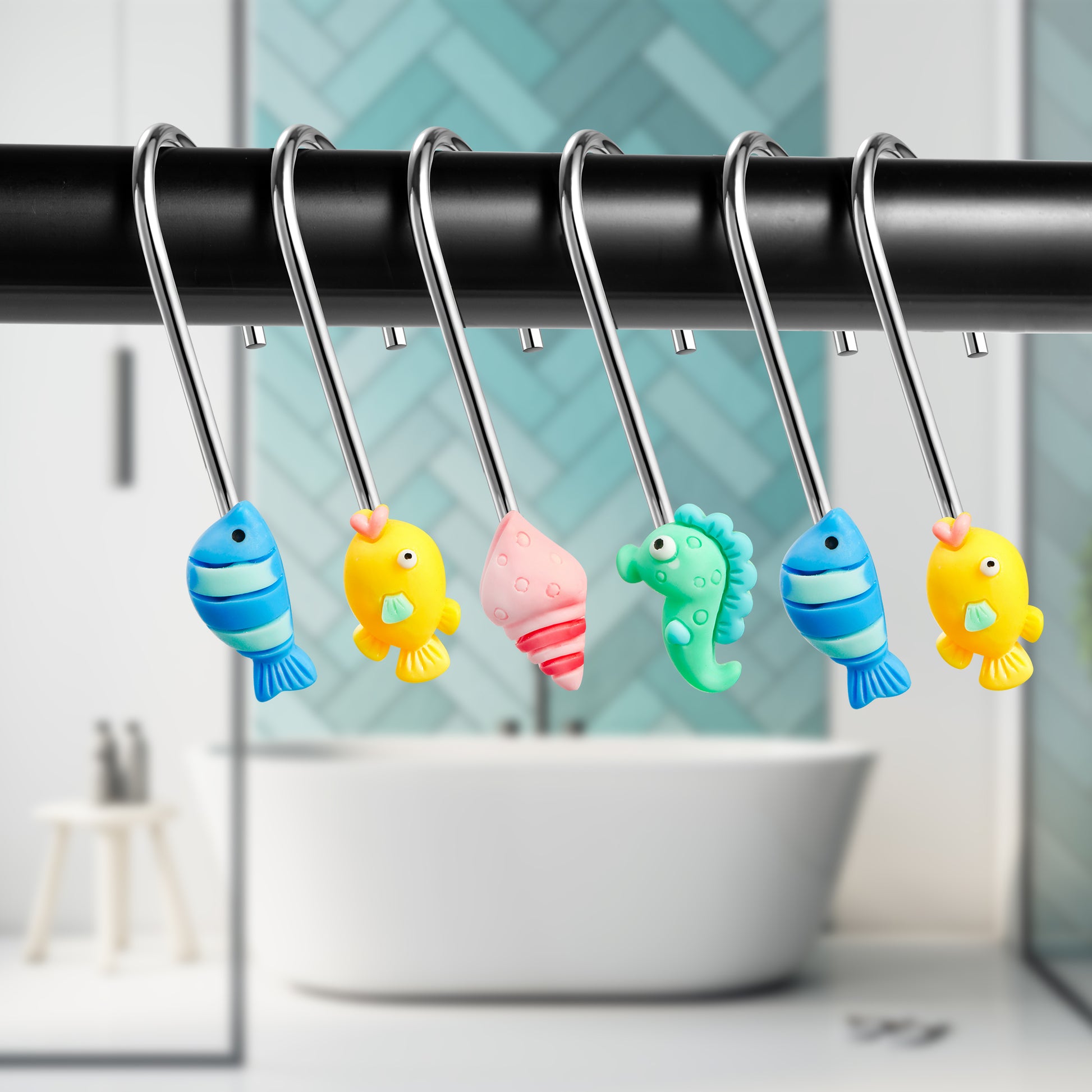 Cute Bathroom Decor: Our cute ocean theme sea animal curtain hooks are a great decoration for your kid’s room curtain or the bathroom shower curtain. Design with blue sea animal theme, such as yellow croaker seahorse blue fish conch shape, which is suitable for bathroom, baby room, bedroom, and living room decor.