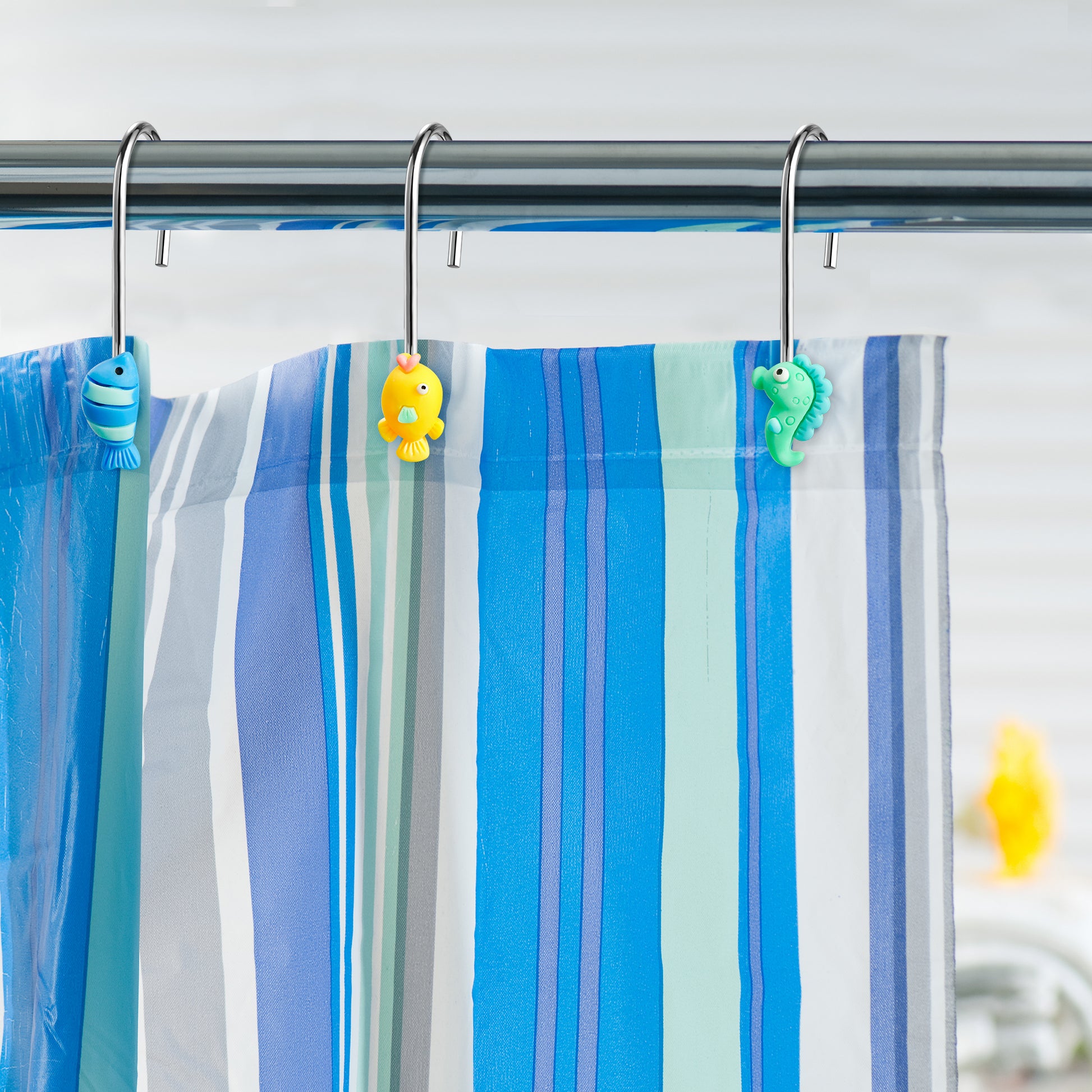 W1cwey 12pcs Ocean Theme Sea Animal Shower Curtain Hooks Blue Sea Theme Glide Shower Rings Marine Life Yellow Croaker Seahorse Blue Fish Conch Shape Stainless Steel Hanger Ring for Kids Bathroom Decor