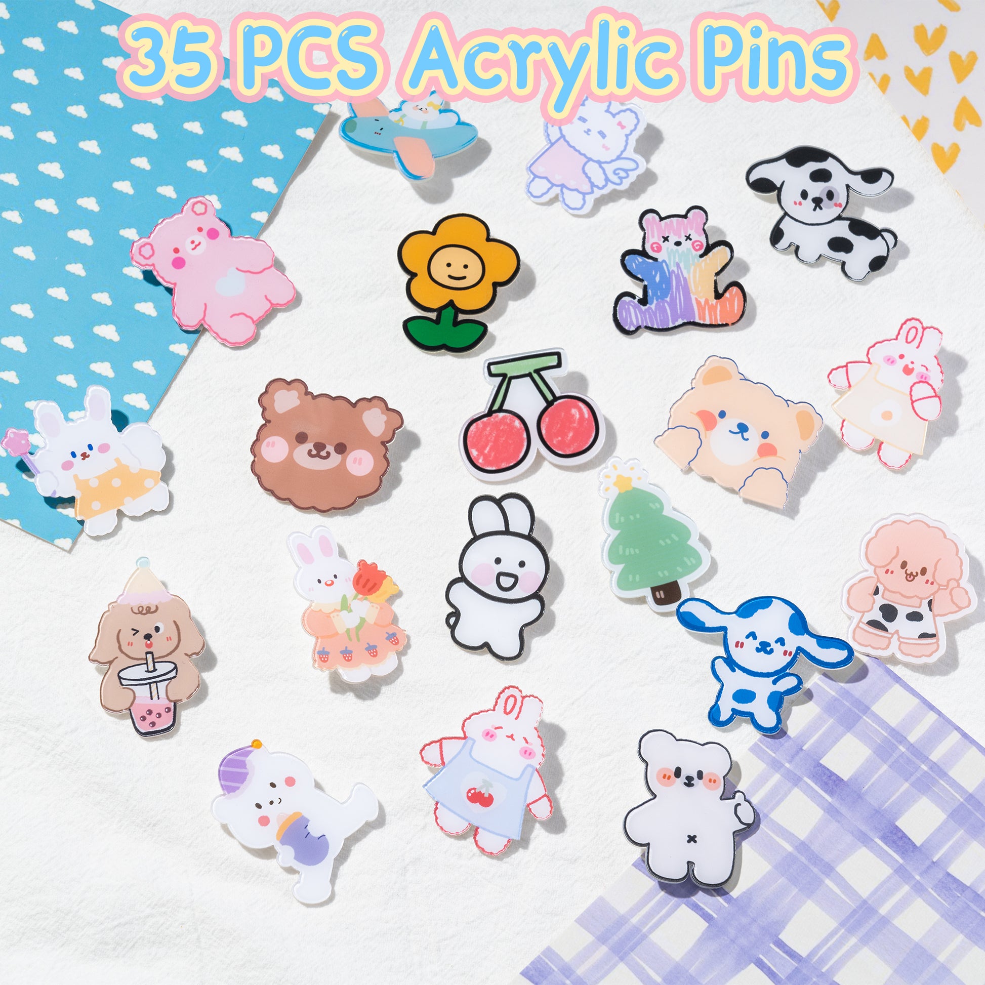 Good Value: Including 35 pieces of Acrylic Pins with different styles. These cute pins are a good way to make you eye-catching and attractive.