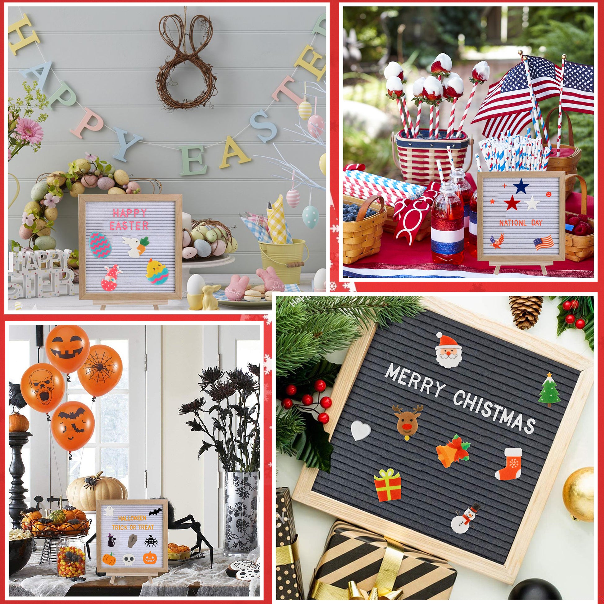 They can be easily applied on felt letter boards or changeable letter boards which are suitable for homes, offices, cafes, restaurants, shops, or other places, and they are also suitable for Christmas, Easter, Halloween, and all seasons.
