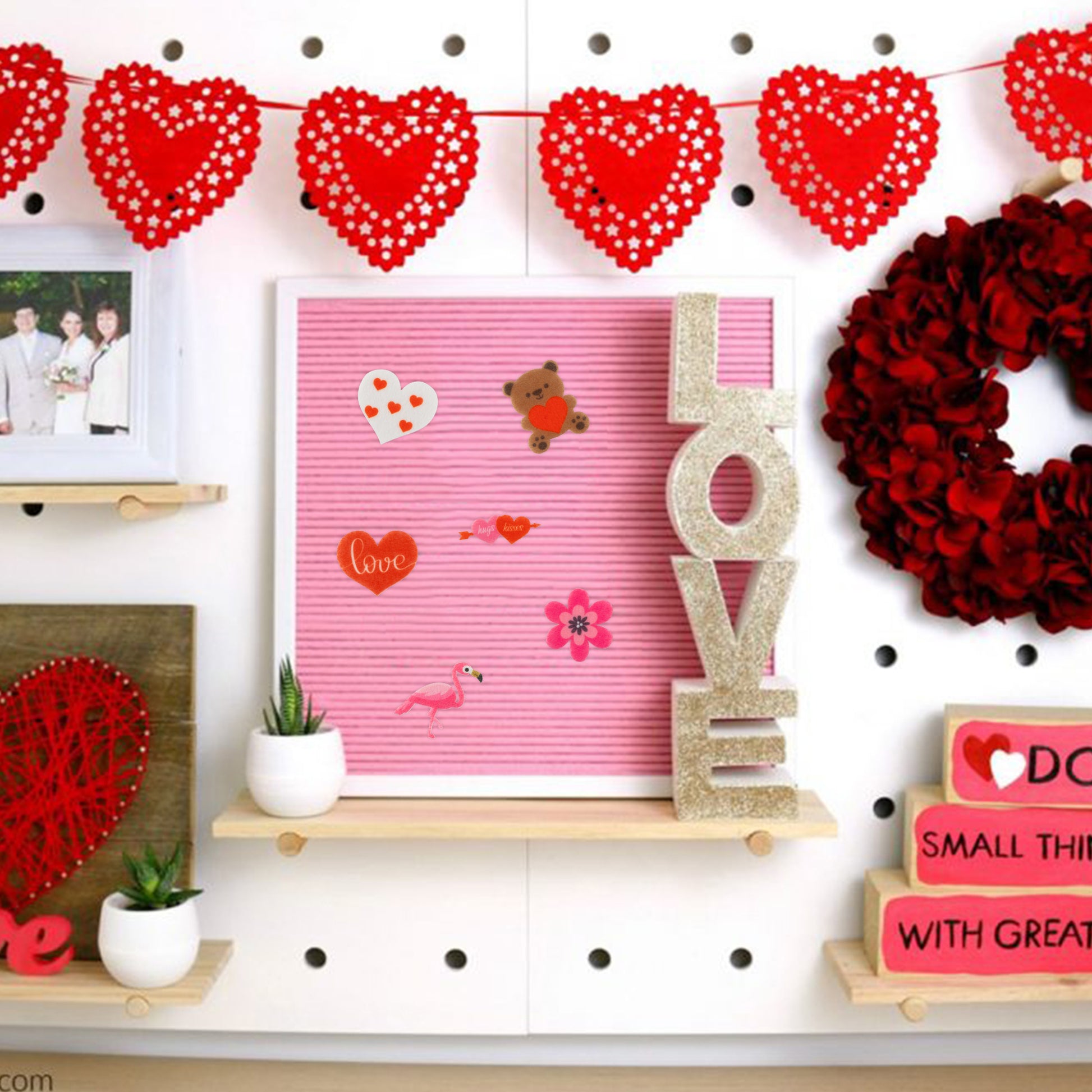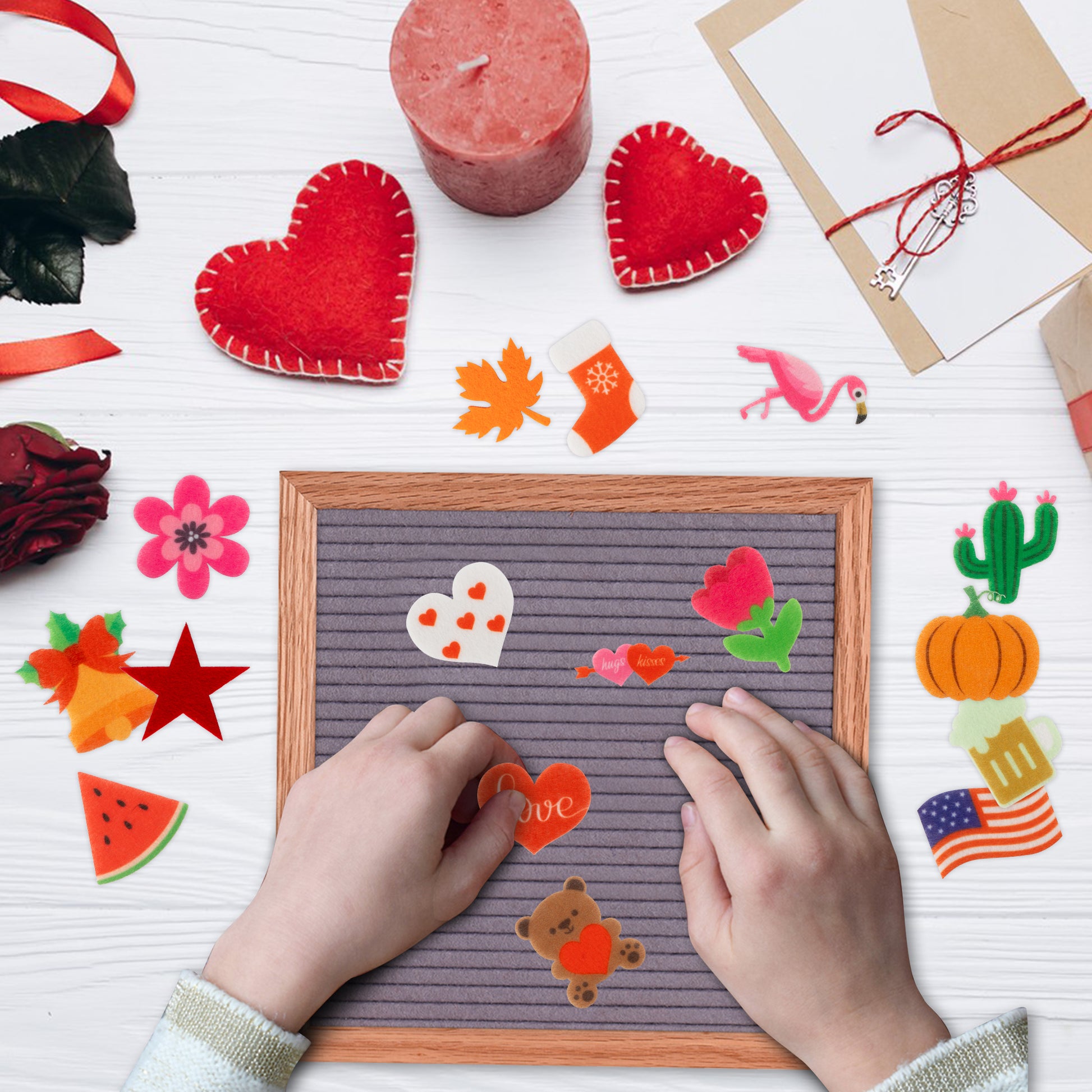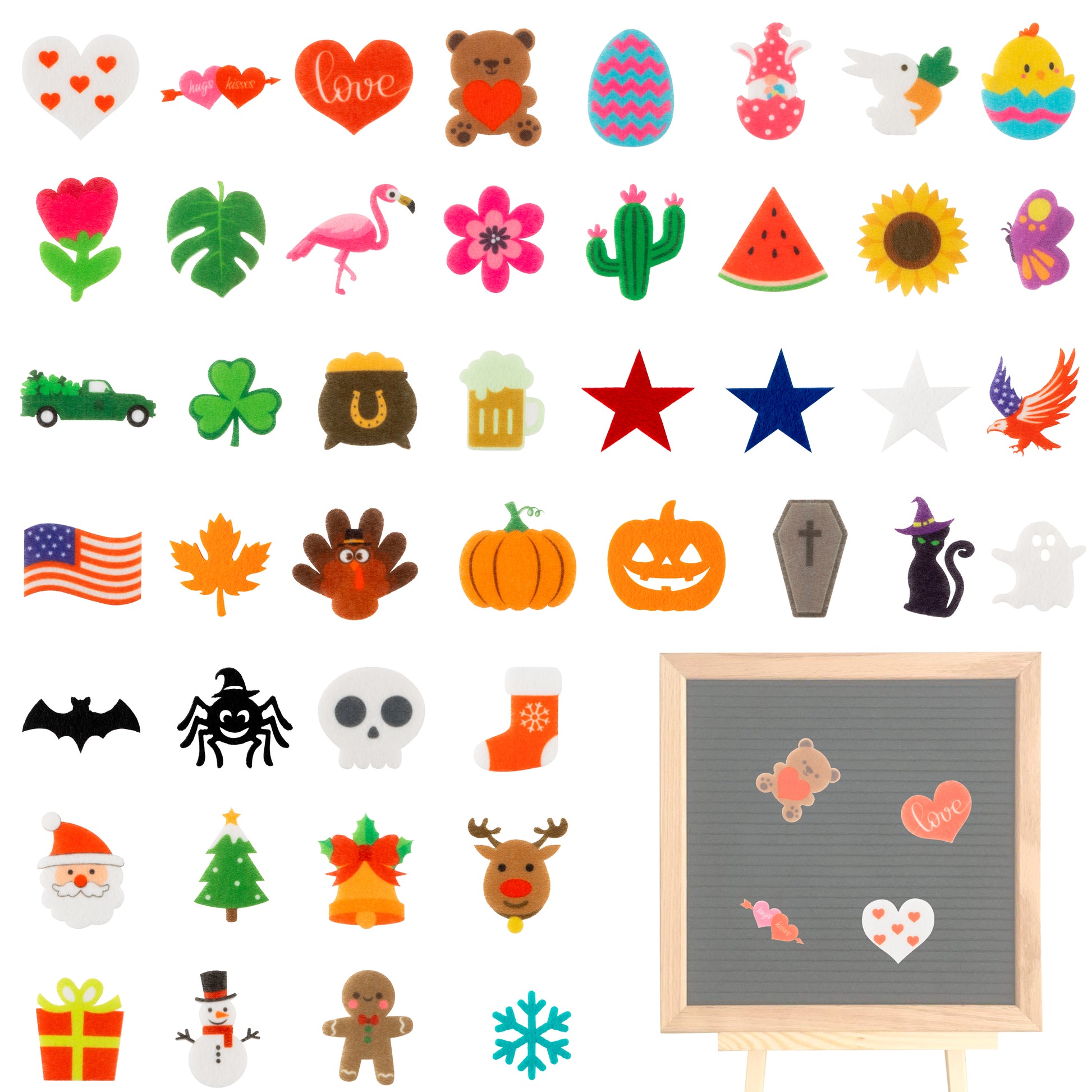 W1cwey 44pcs Seasonal Icons for Felt Letter Board Cute Message Board Decorations Seasonal Decor for Changeable Letter Board Holiday Accessories Icons for Valentine's Day (Board Not Included)