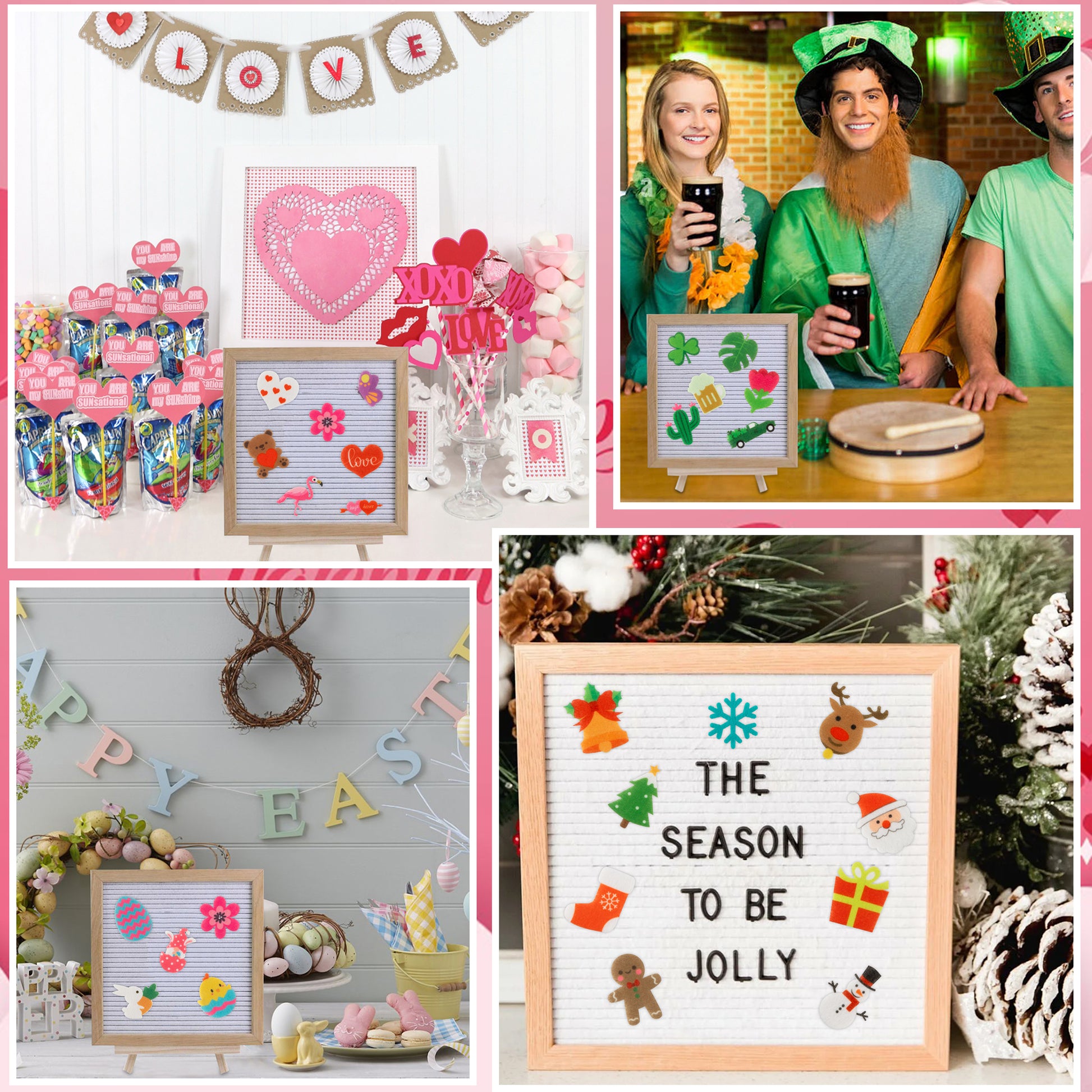 Wide Application: They can be applied on felt letter boards or changeable letter boards which are suitable for homes, offices, cafes, restaurants, shops, or other places, and they are also suitable for Valentine's Day Christmas, Easter, Halloween, and all seasons.