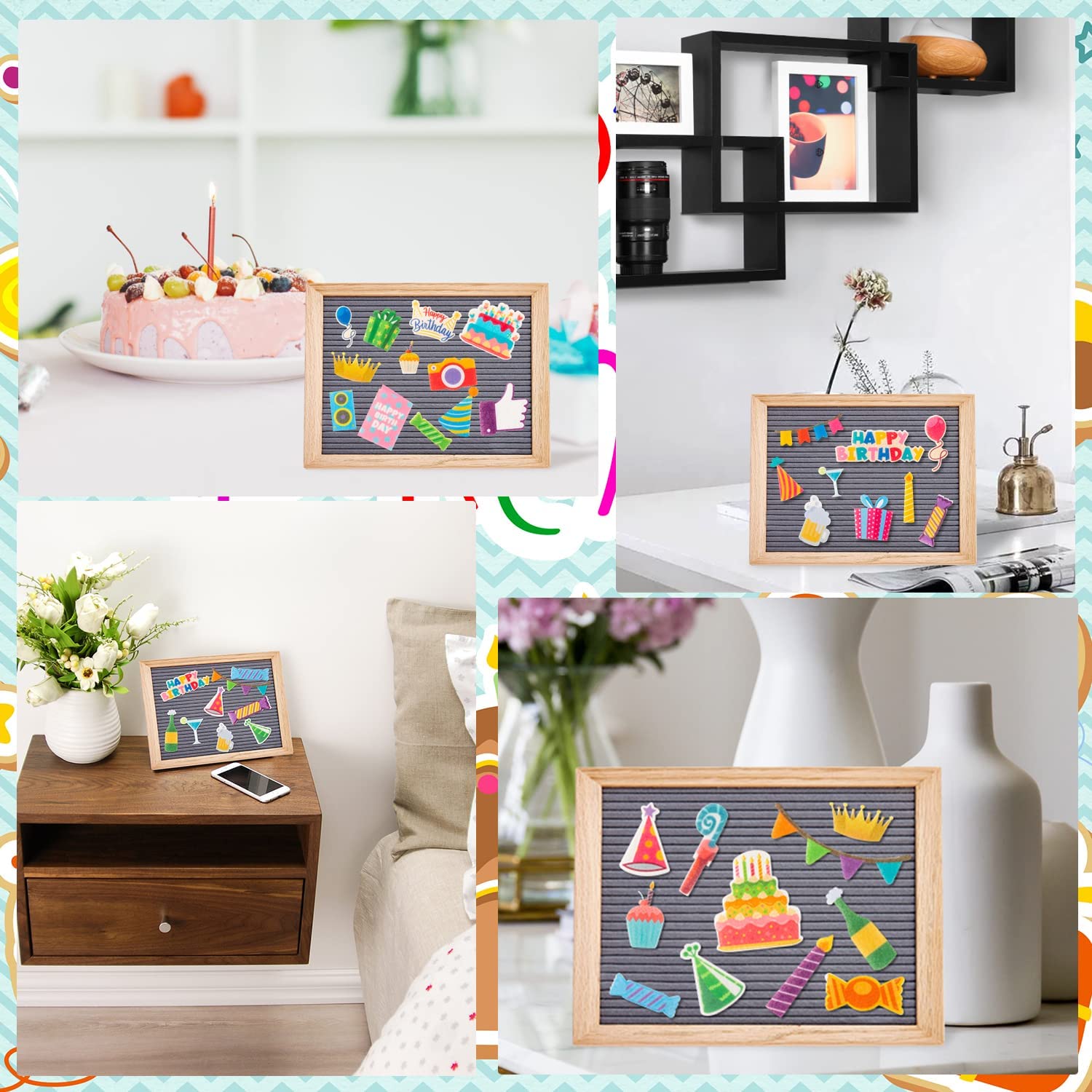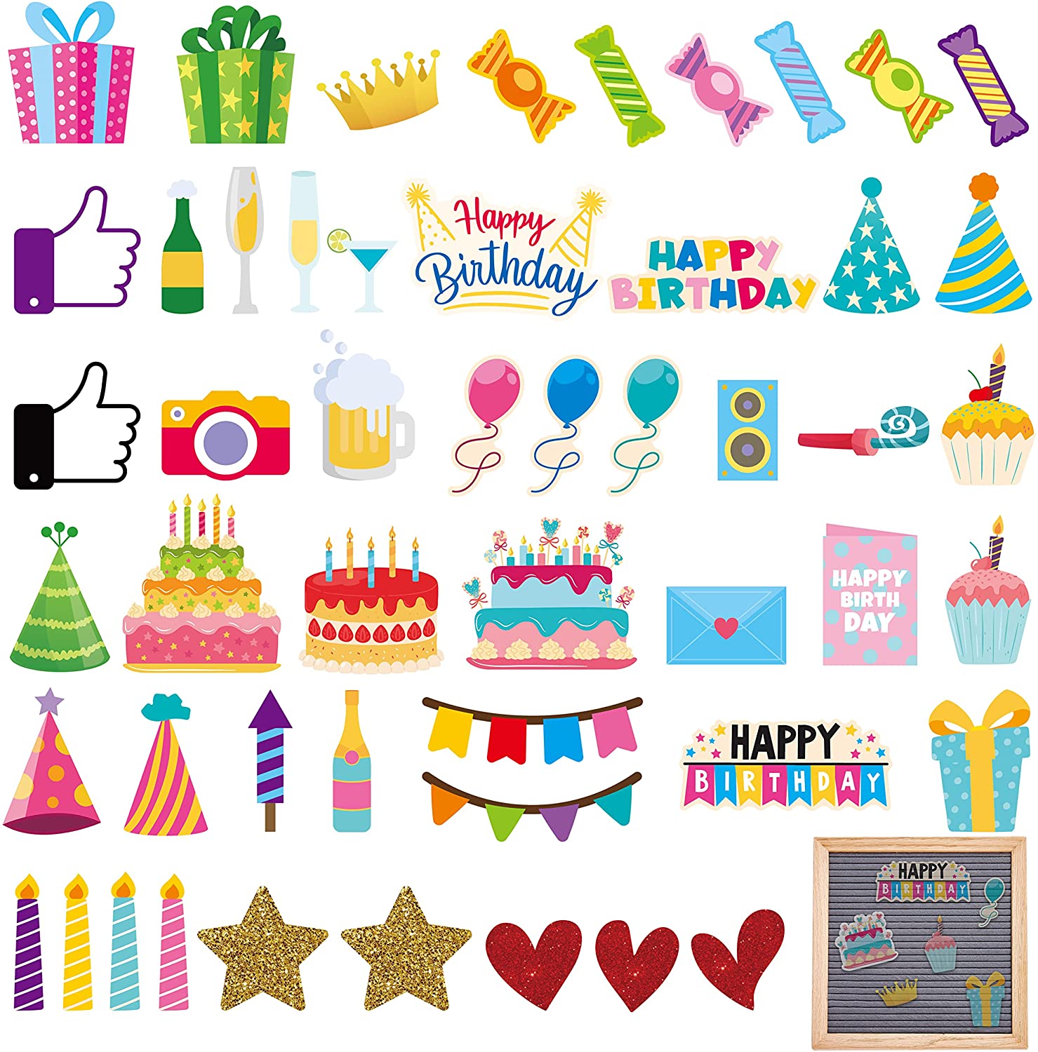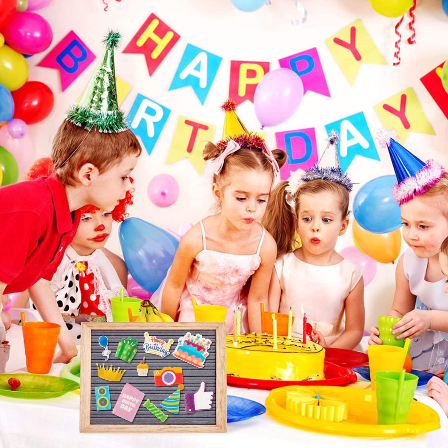 W1cwey 46pcs Birthday Theme Icons for Felt Letter Board Cute Message Board Decorations Celebration Decor for Changeable Letter Board Birthday Accessories Icons for Happy birthday Party (Board Not Included)