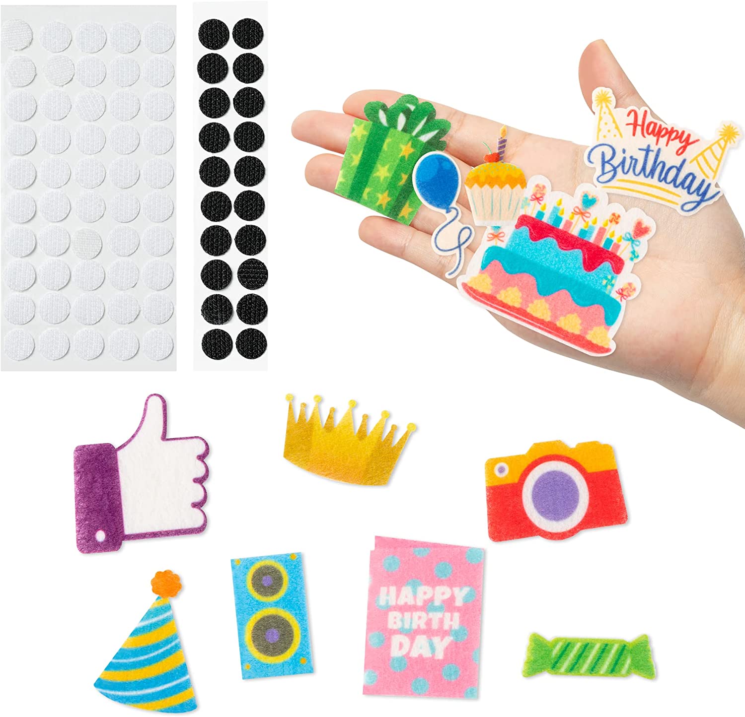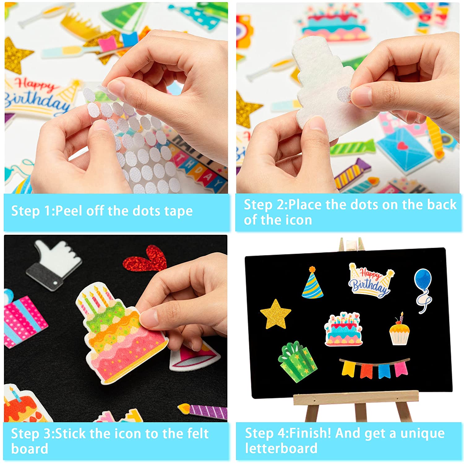 Material: Icons are made of felt, and the hook and loop self-adhesive dots tape is made of nylon. They can be easily attached to the letter board and can be reused many times which is not easy to break and deform.