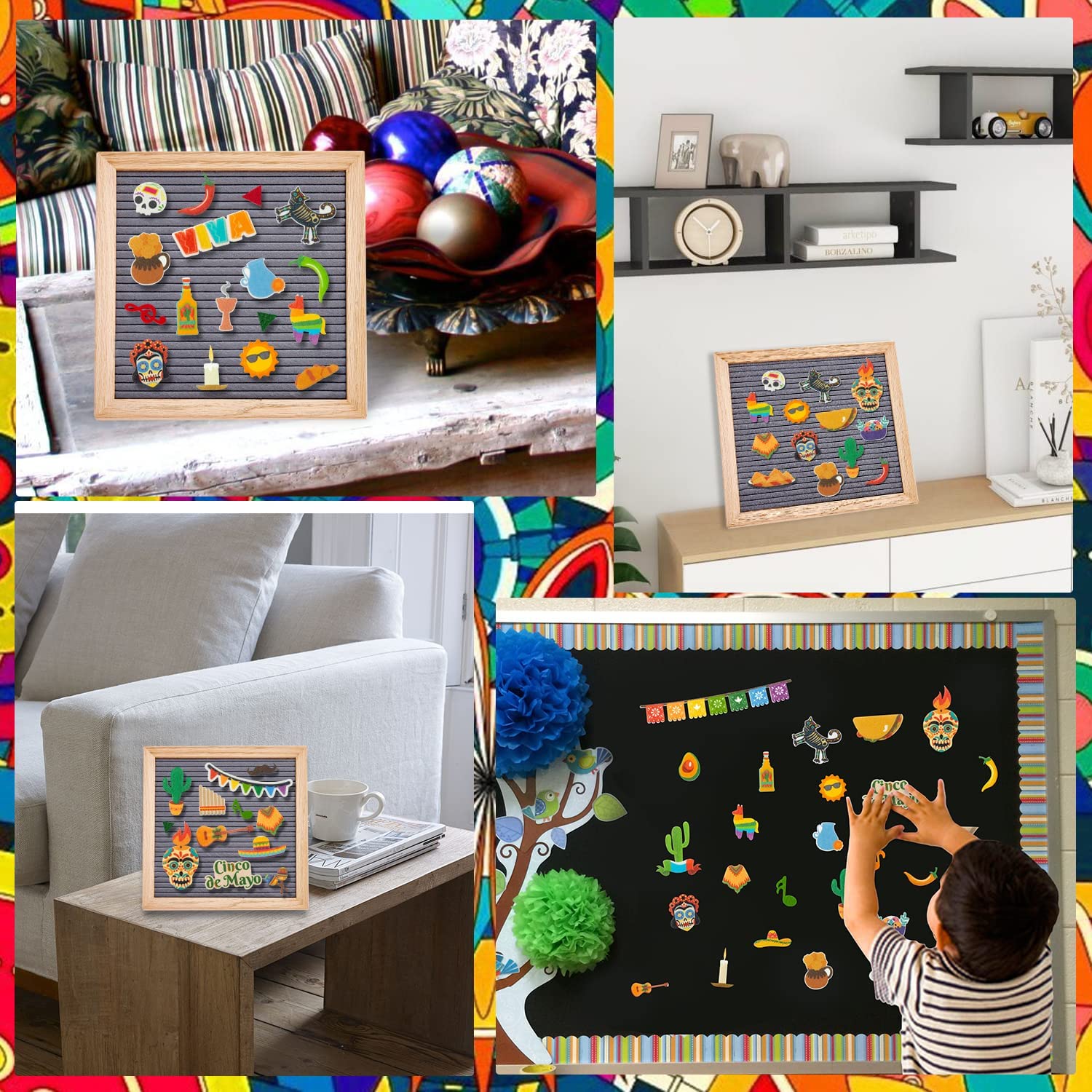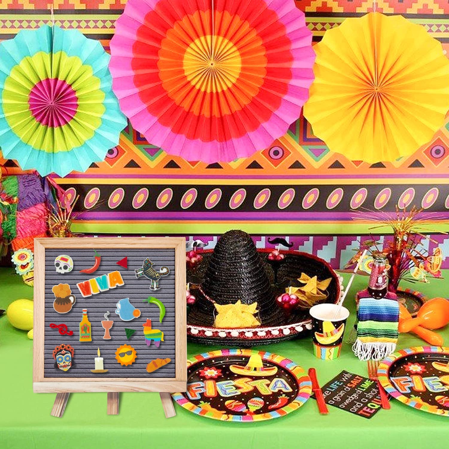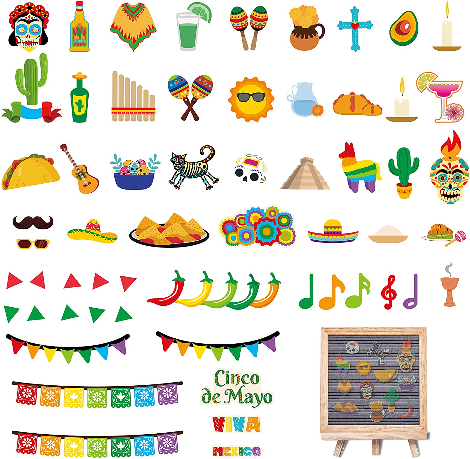 W1cwey 63pcs Mexican Fiesta Icons for Felt Letter Board Cute Message Board Decor for Changeable Letter Board Holiday Accessories Festive Icons for México Party Fiesta (Board Not Included)