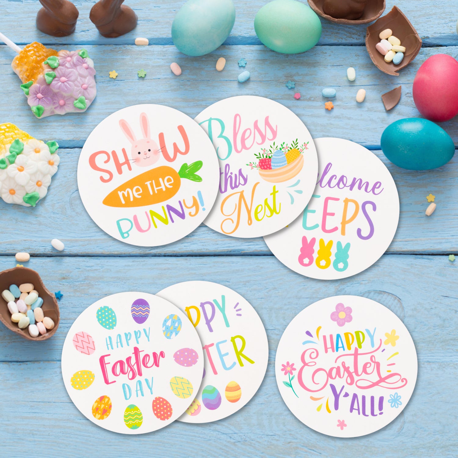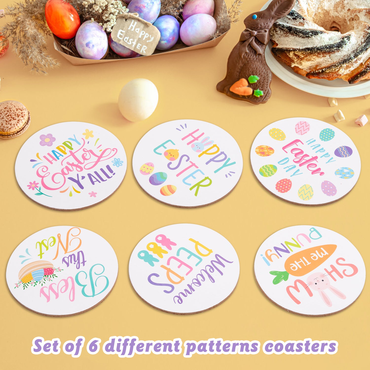 6 pieces of Easter theme coaster with different patterns.