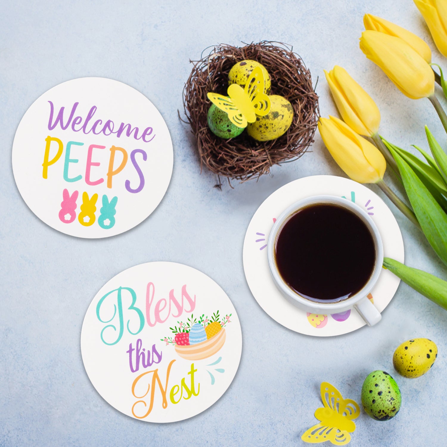 Happy Easter Coaster: With 6 styles of coasters offered to you, different patterns, and designs coasters are a good choice for gifts.