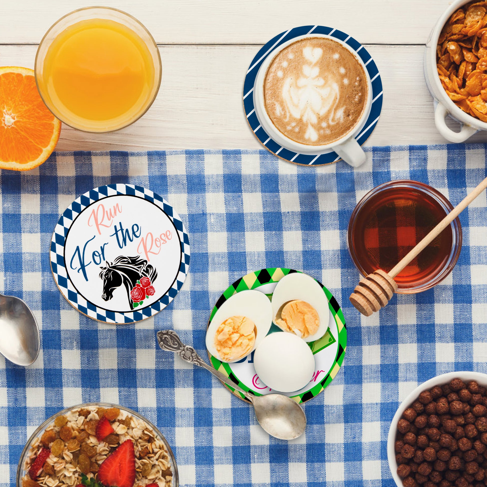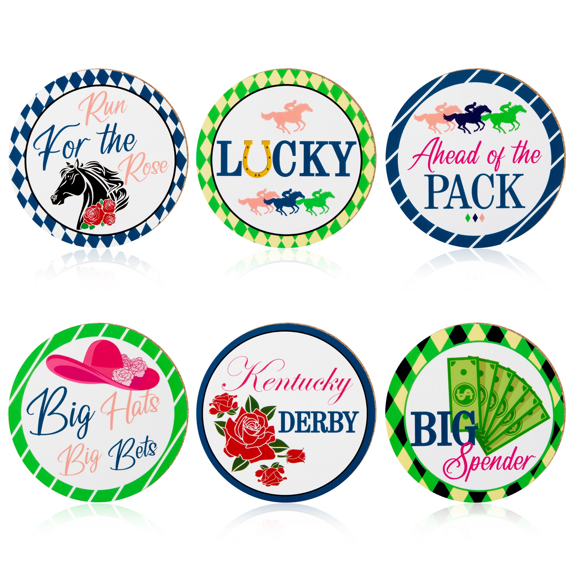 6 pieces of Kentucky Derby racehorse theme coaster with different patterns.