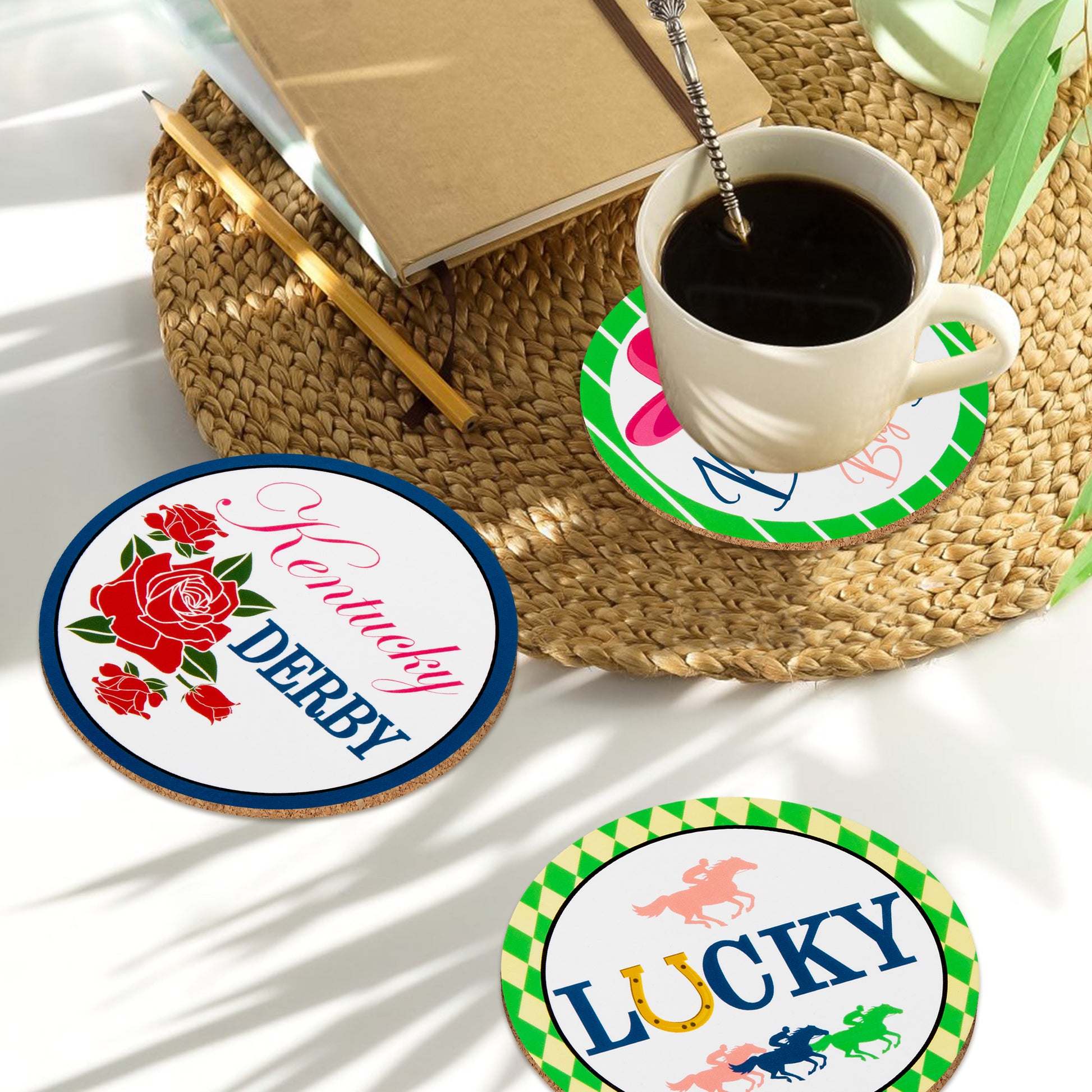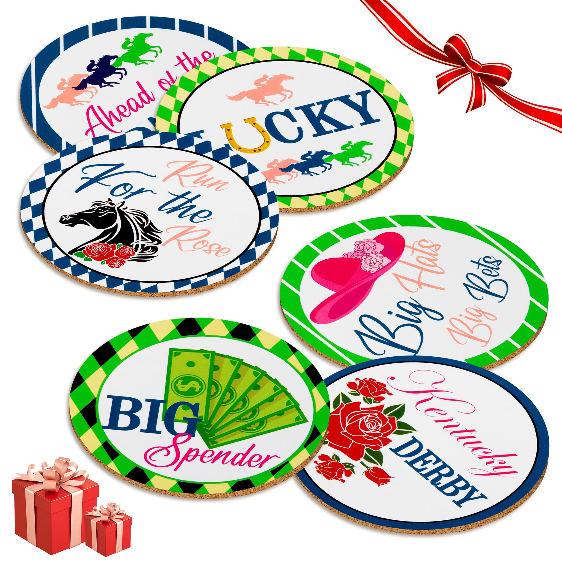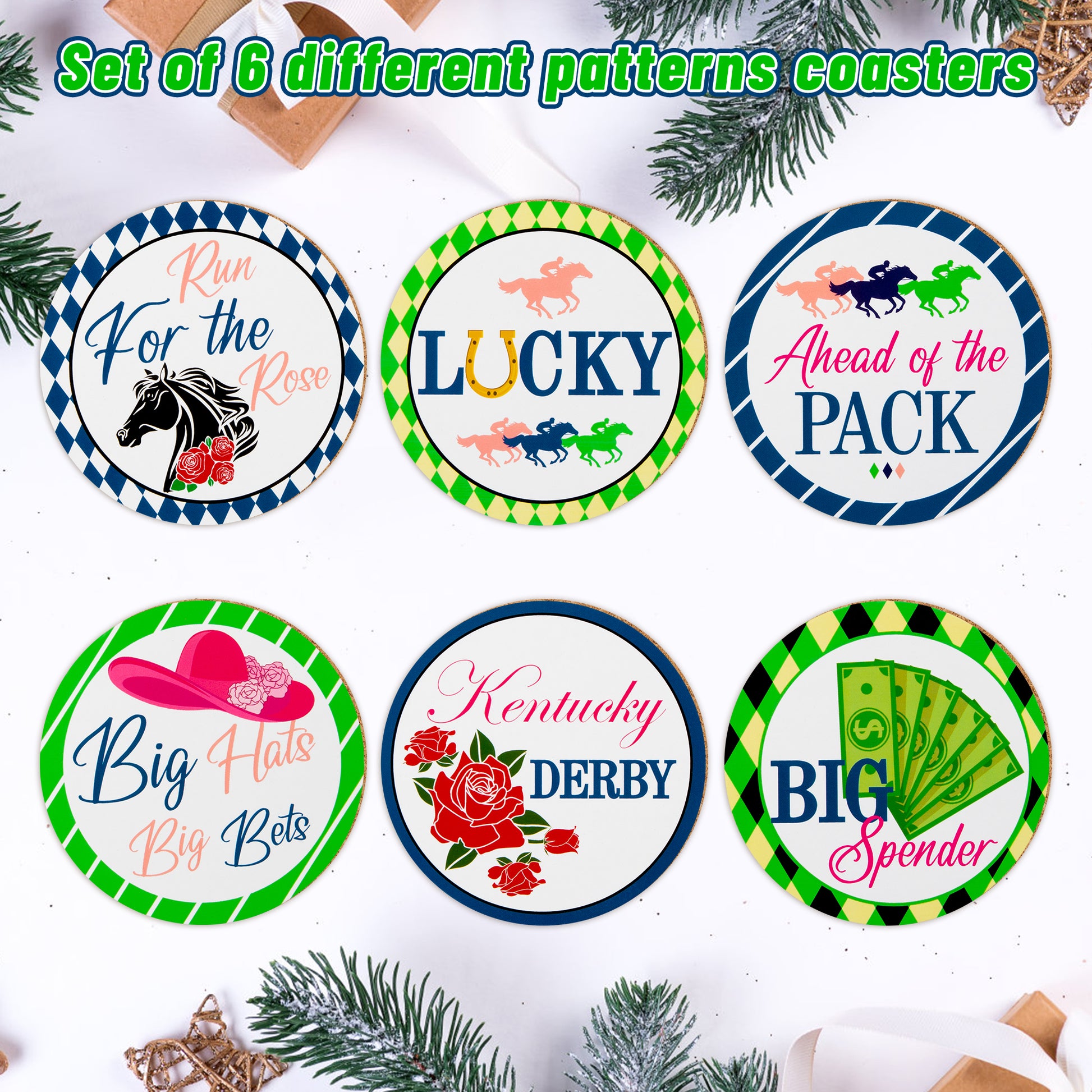 W1cwey 6pcs Kentucky Horse Derby Theme Coaster Set Absorbent Coasters with Fiber Cork Base Funny Race Horse Cup Mat Gifts Run for The Rose Party Decoration Supplies