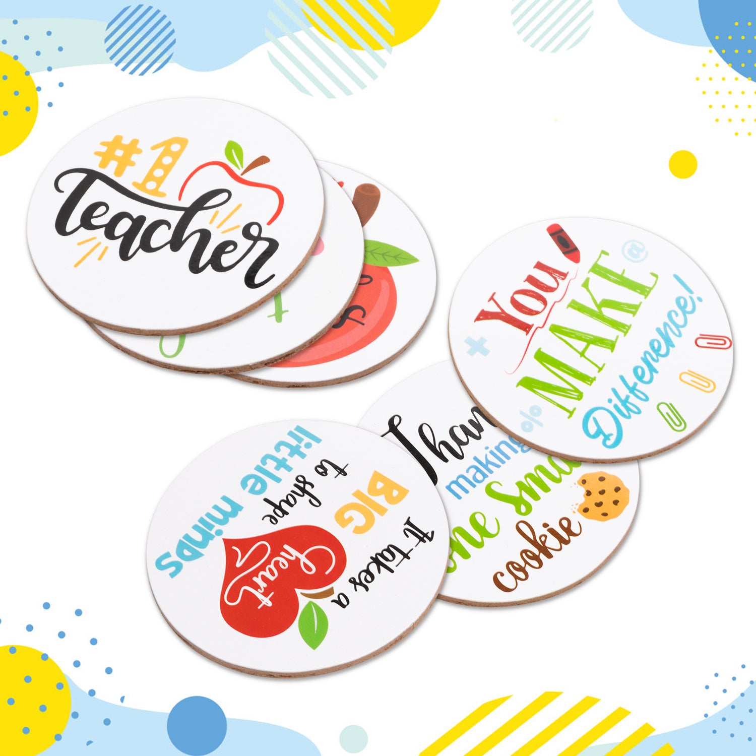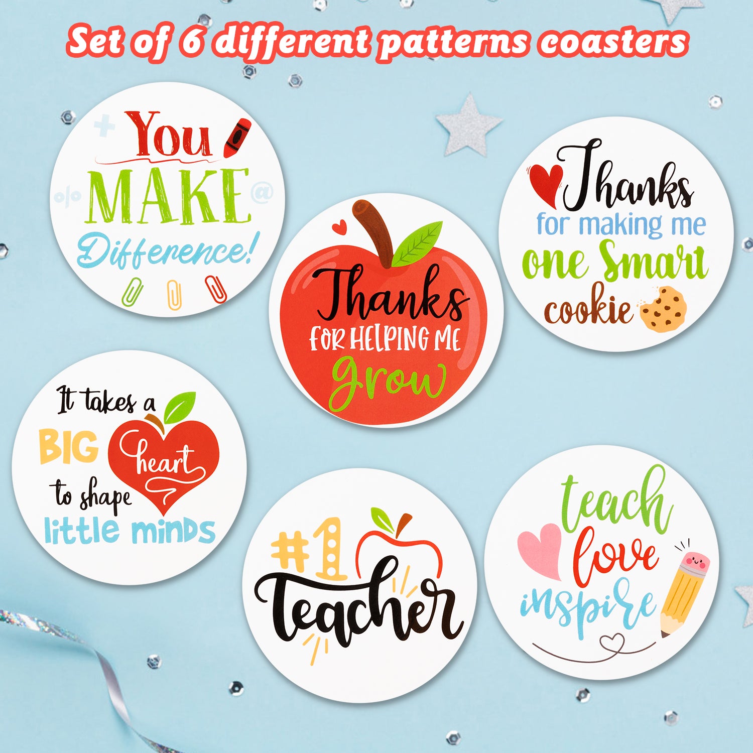 6 pieces of teacher appreciate theme coaster with different patterns.