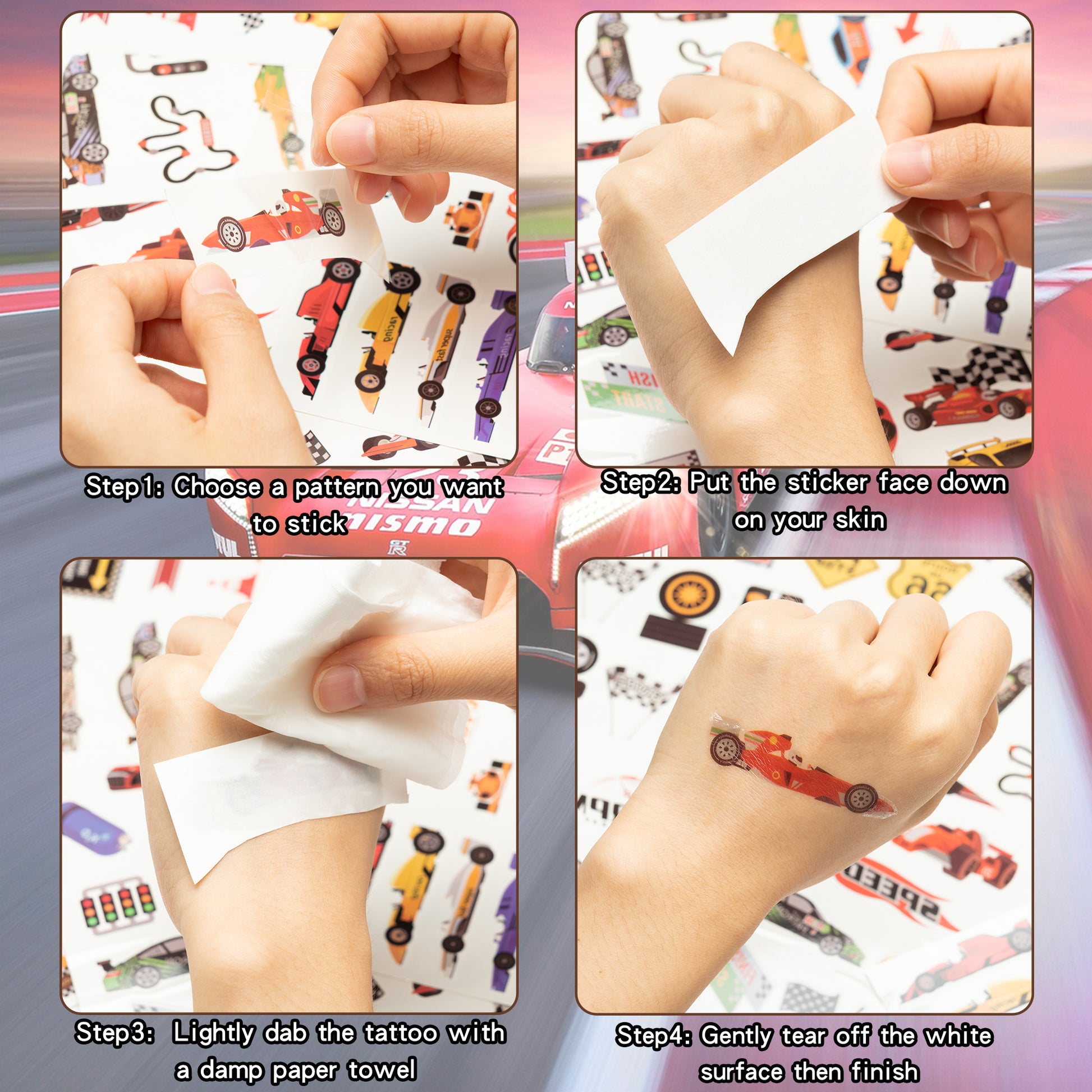 Our tattoo stickers are safe and non-toxic. They are suitable for race car theme parties, birthday parties, DIY parties, etc.