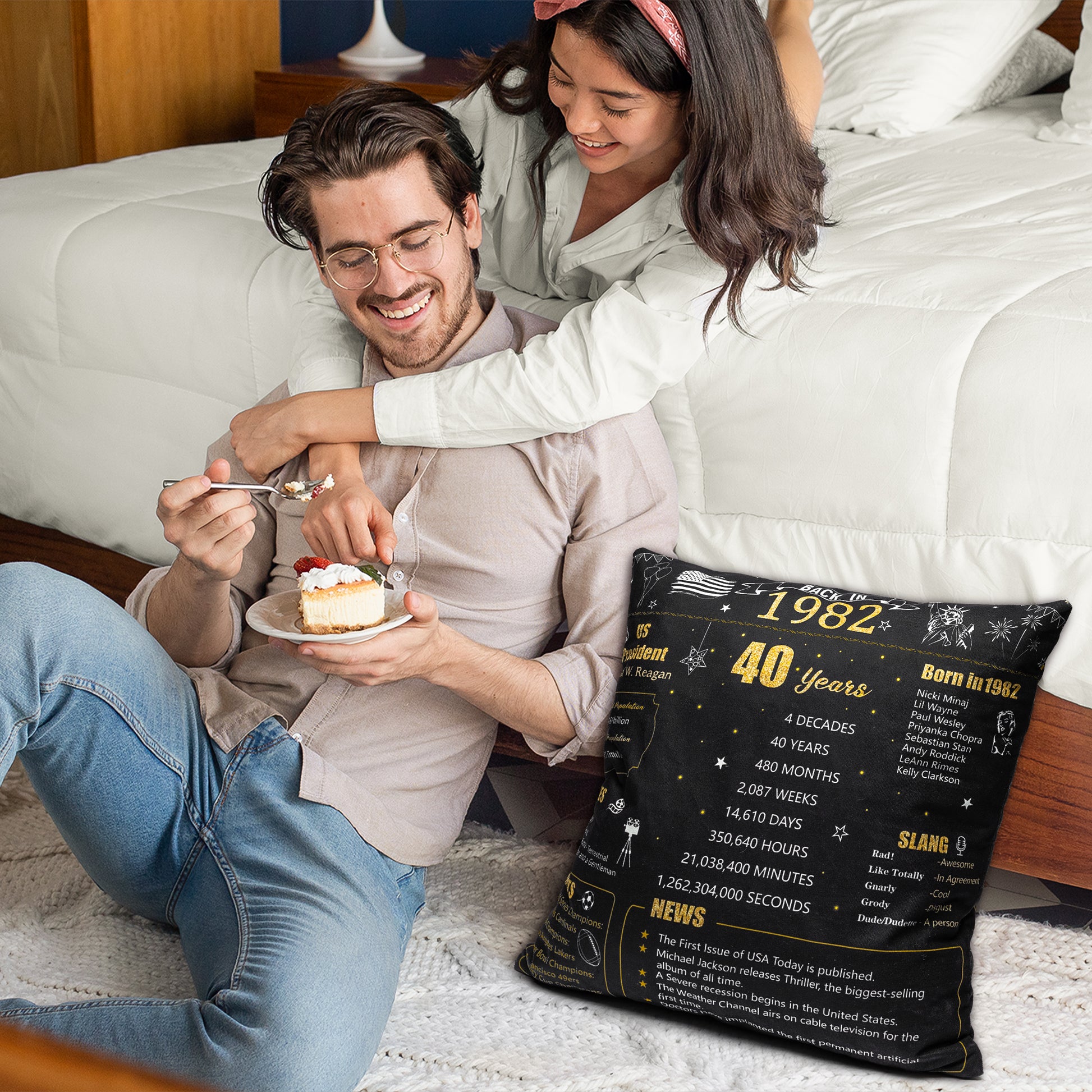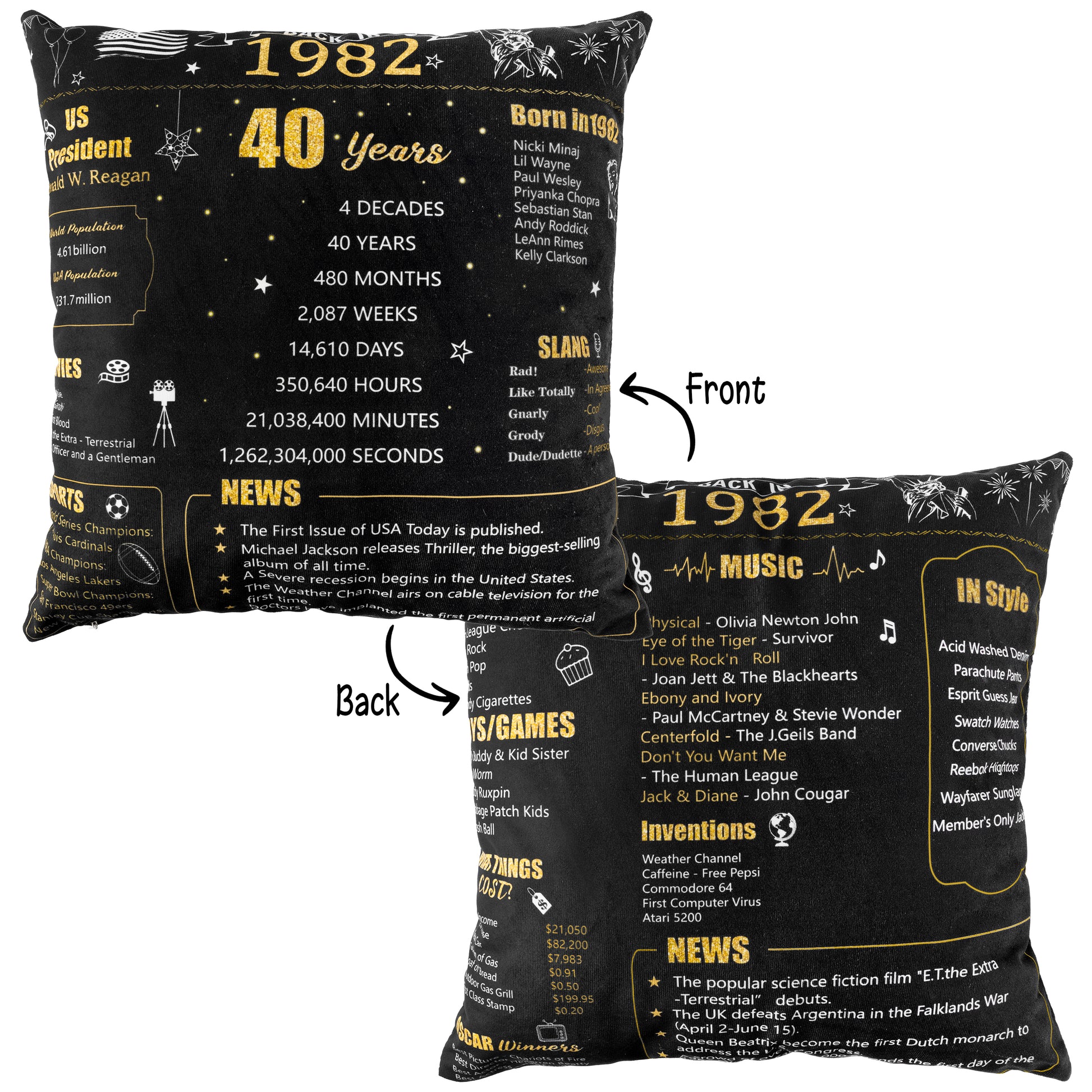 W1cwey Back in 1982 Birthday Pillow Cover 18 Inches 40 Year Old Birthday Party Decoration Gift 40th Anniversary Black Gold 1982 Information Double Side Printed Throw Pillow Cover for Sofa Home Decor