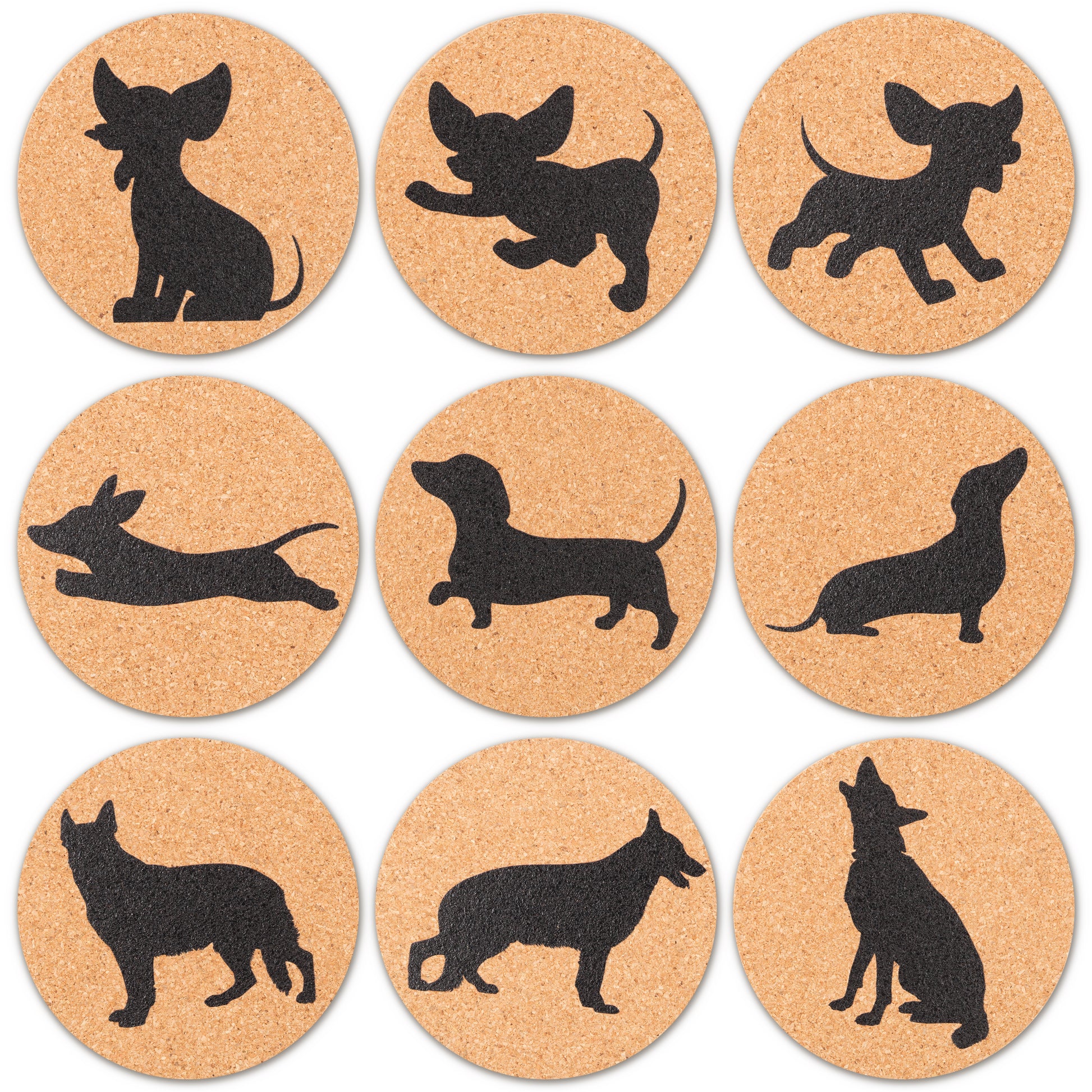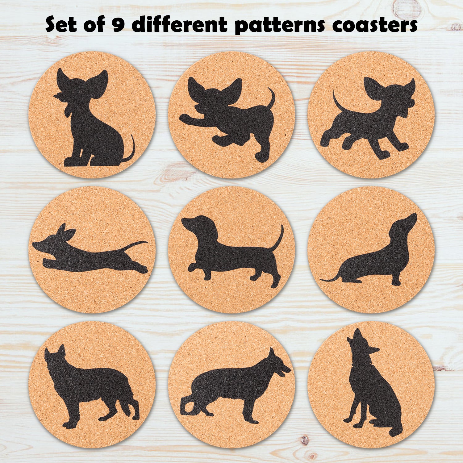 Cute Dog Coaster: With 9 styles of coasters are offered to you, design with chihuahua, german shepherd, dachshund, they are all different patterns.