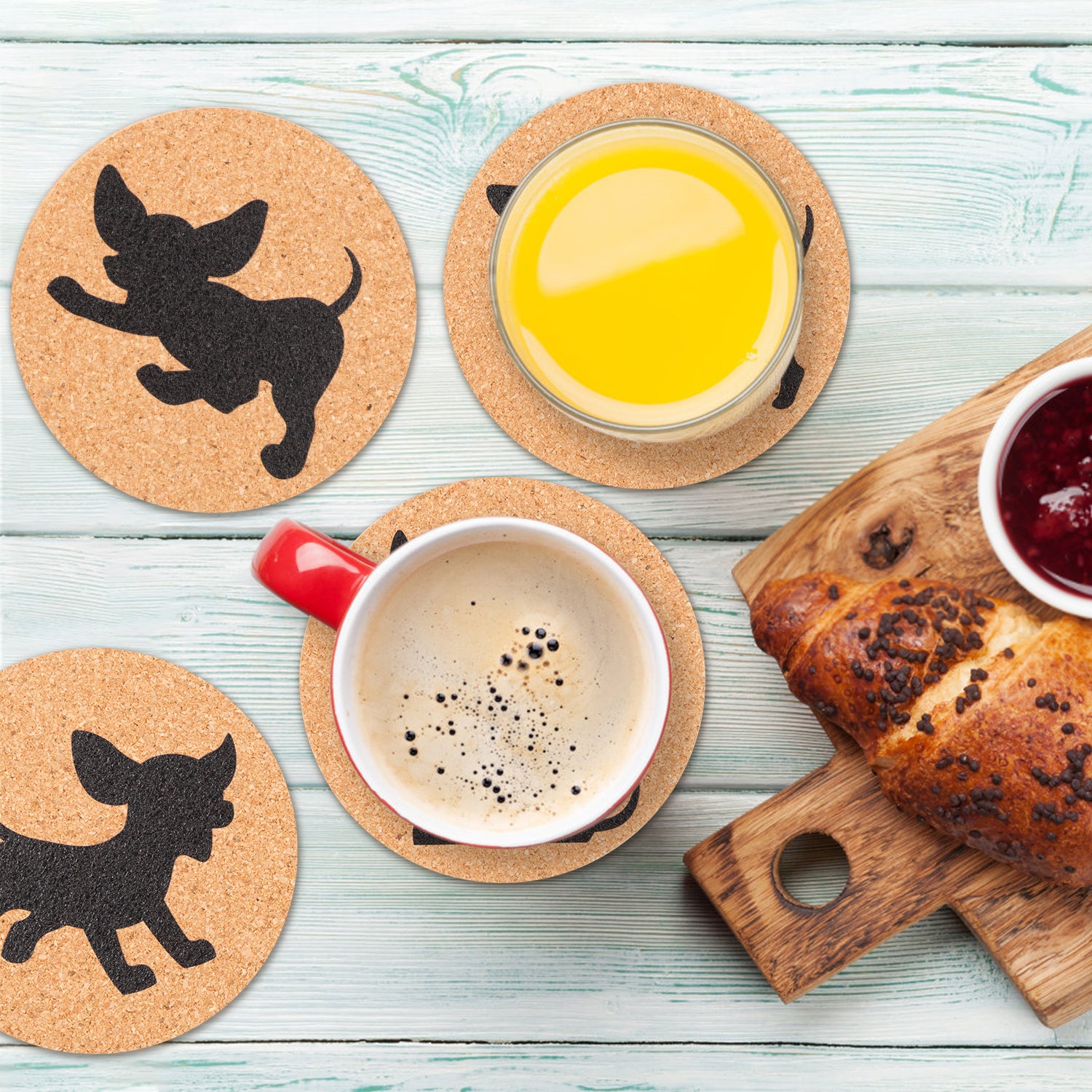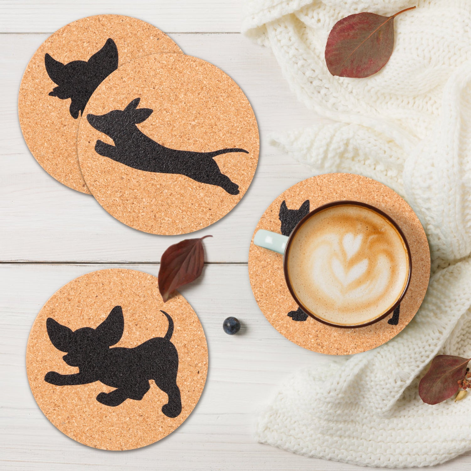 W1cwey Dog Lovers Cork Drink Coasters Set Cute Absorbent Coasters with Fiber Cork Base Cup Mat Design with Chihuahua German Shepherd Dachshund Great Gift for Dog Owner Puppy Lovers